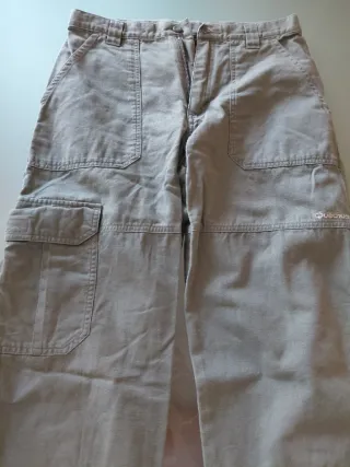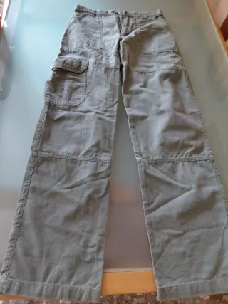 Pantalón de montaña de estilo cargo en color verde, talla de 159 a 172 cm (14 años). Diseñado para actividades al aire libre. - Tejido resistente. - Múltiples bolsillos. - Cintura ajustable.