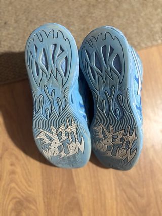 Zapatillas deportivas Puma Melo MB04 con diseño La France. - Color azul y blanco. - Detalle de alas y número 1. - Cordones azules. -Talla 44 -3 meses de uso -Suela en perfecto estado