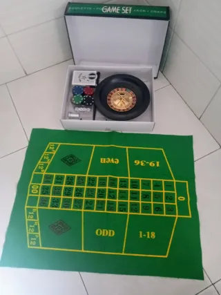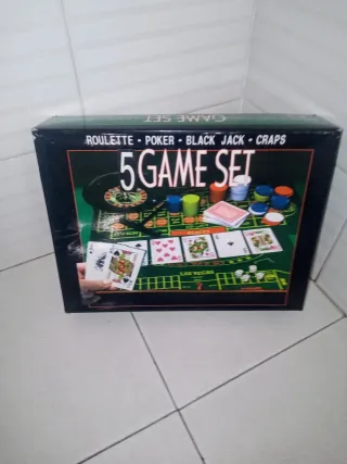 Set de juegos de mesa para disfrutar en casa. Incluye varios juegos clásicos para entretenimiento. - Incluye juegos de Ruleta, Póker, Black Jack y Craps. - Diseño temático de Las Vegas.