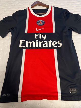Camiseta de fútbol del Paris Saint-Germain. Talla S Precio algo negociable - Diseño oficial con logo del club y patrocinador. - Tecnología Dri-FIT de Nike para mayor comodidad. - Colores azul marino, rojo y blanco.