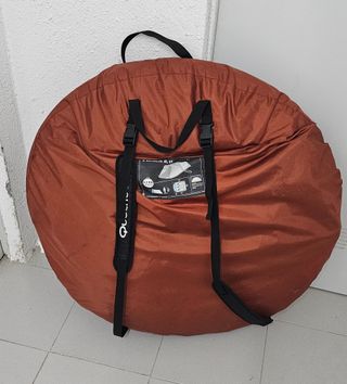 Tienda de campaña Quechua modelo 2 Seconds XL III. - Color marrón/naranja. - Diseño de fácil montaje y desmontaje rápido. - Capacidad para tres personas. - En buen estado, muy cuidada. - Peso 4,7 Kg. - Con bolsa de transporte. - Medidas largo 2,95 ancho 2,00 y alto 1,10. - Zona porche para colocación de botas. - Fondo amplio para colocar las mochilas. Algo negociable.