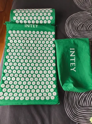 Kit de esterilla y almohada de acupresión de la marca Intey. - Color verde. - Incluye bolsa de transporte.