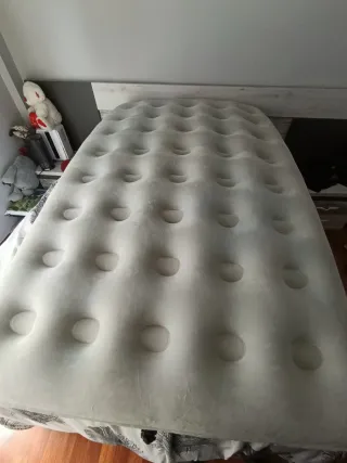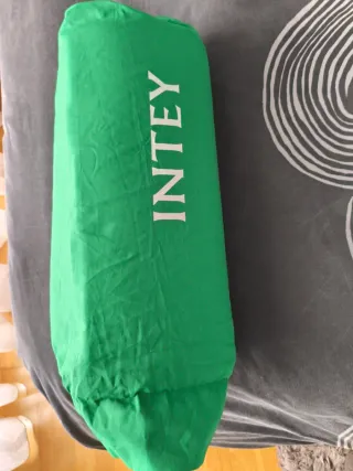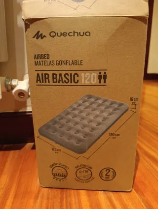 Colchoneta inflable para camping, ideal para dos personas. Su diseño con cámaras de aire proporciona comodidad. - Material: PVC - Color: Gris - Dimensiones: 190 x 137 x 22 cm Usada solo una vez