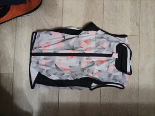 Chaleco de protección dorsal para esquí o snowboard, talla 12 años. Diseñado para ofrecer seguridad en la montaña. - Tejido ligero y transpirable. - Cierre de cremallera frontal. - Diseño con estampado geométrico en gris, rosa y negro.