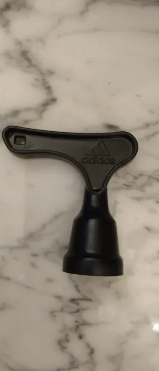 Llave de plástico negra para tacos de fútbol Adidas. - Diseño en forma de T para un mejor agarre. - Logo de Adidas grabado en la parte superior.