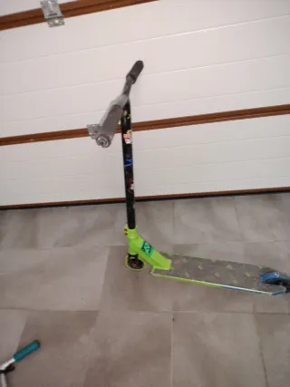 Patinete de estilo freestyle en color verde brillante. Perfecto para trucos y diversión al aire libre. - Manillar negro con puños grises. - Plataforma ancha para mayor estabilidad. - Ruedas resistentes.