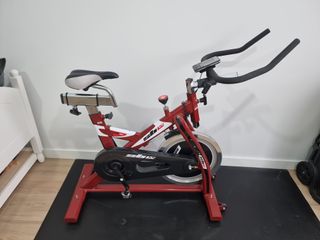 Vendo bici de spinning BH SprintBike en muy buen estado general. Perfecta para entrenar en casa: estable, sólida y con volante de inercia pesado. Incluye alfombra protectora de 180x80 cm ideal para amortiguar ruido y proteger el suelo. ✔️ Características: - Marca: BH Fitness - Modelo: SprintBike - Volante de inercia grande y suave - Resistencia por fricción (tipo zapata) - Sillín y manillar regulables - Pedales Shimano SPD (de gama ciclista) - Pantalla con funciones básicas (tiempo, distancia, calorías...) - Muy estable y silenciosa Se entrega limpia y revisada. Recogida y transporte a cargo del comprador.