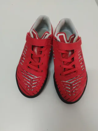 Zapatillas de fútbol para niño en color rojo. - Cierre de velcro y cordones. - Diseño con detalles plateados. - Talla 30 No han dado ninguna patada al balón, puestas dos veces para pasear