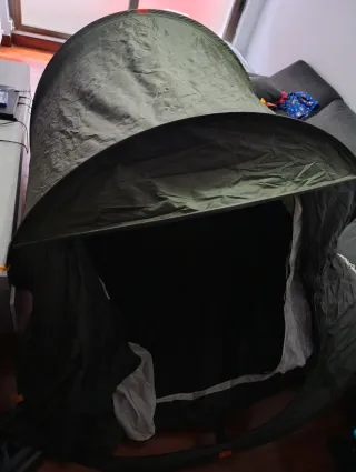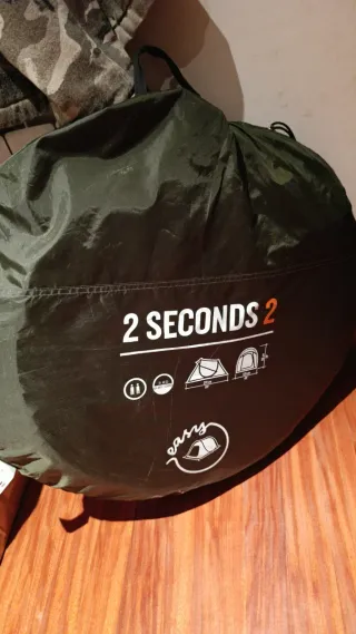 Tienda de campaña Quechua modelo 2 Seconds 2 para 2 personas. Fácil y rápida de montar. - Color verde. - Incluye bolsa de transporte. - Diseño compacto. Solo se uso una vez, está en perfectas condiciones.
