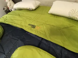 Sábanas para camping, ideales para tus escapadas al aire libre. - Color verde. - Incluye funda de almohada. Incluye dos almohadas viscoelásticas de camping. 20 grados.