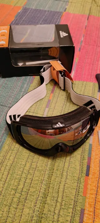Gafas de esquí de la marca Adidas, nuevas y en su embalaje original. - Diseño moderno y deportivo. - Correa ajustable con logo de Adidas. - Lente con acabado espejo Nuevas, sin estrenar. Precio en tienda 150€.