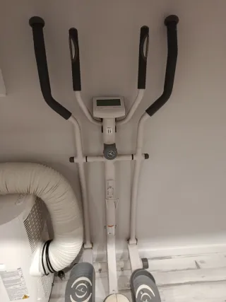 Elíptica de color blanco con pantalla digital. - Pedales amplios. - Manillar con agarres. - Estructura metálica.
