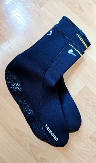Conjunto de guantes y escarpines de neopreno de la marca Tribord. Talla XL / 46. Usados 1 vez, están nuevos. - Guantes de 2mm. - Escarpines de 3mm con suela antideslizante. - Color negro.