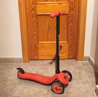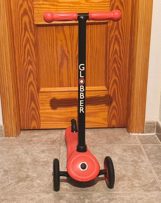 Patinete infantil de la marca Globber en color rojo. - Altura aproximada de 70cm. - Diseño de tres ruedas.