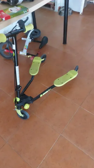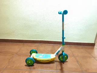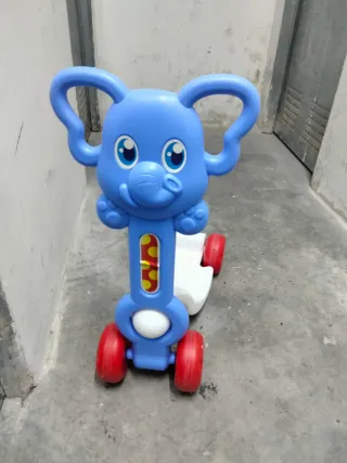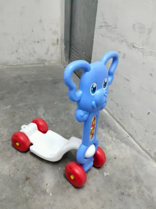 Divertido patinete con diseño de elefante para los más pequeños. Ideal para iniciarse en el mundo de los patinetes. - Color azul. - Ruedas rojas. - Diseño de elefante con orejas y trompa. Usado 3 veces contadas.