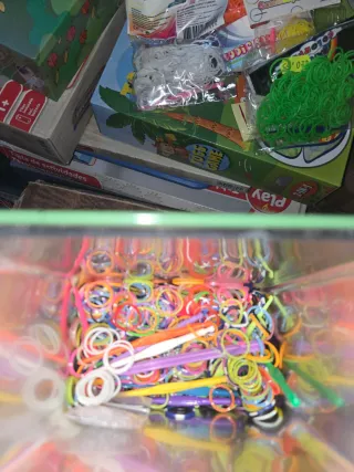 Set de gomas de colores para crear pulseras y otros accesorios. - Incluye gomas de varios colores. - Incluye telar y ganchos para tejer.