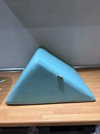 Triángulo postural de color azul claro, diseñado para elevar las piernas. Marca Ecopostural. -- Forma triangular ergonómica