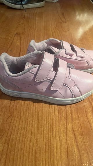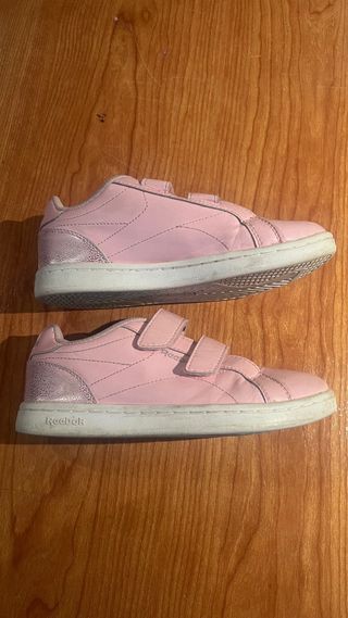 Zapatillas deportivas Reebok en color rosa, perfectas para el día a día. - Talla 33 - Cierre con dos tiras de velcro. - Detalle plateado en el talón. - Logo de la marca en los laterales y la suela.