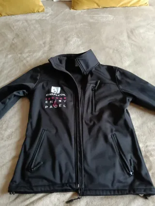 Chaqueta de pádel de la marca Softee, ideal para jugar en interiores. Diseño moderno y cómodo. - Color negro. - Logo de Indoor Enjoy & Pádel en la espalda. - Logo de Softee by Jim Sports en la parte inferior.