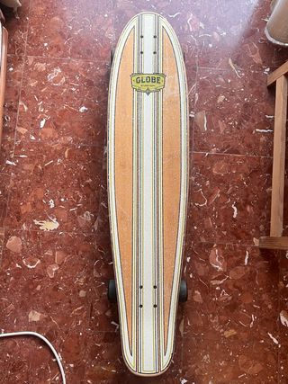 Longboard de la marca Globe. Ha estado encerrado en el trastero durante años. BUENA CALIDAD DE MATERIALES Poco trillado más golpes que otra cosa su usó unas cuantas veces hasta que me hostié. No le guardo buenos recuerdos