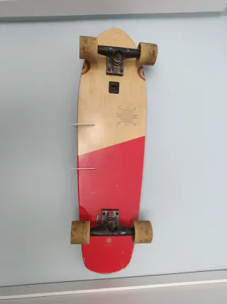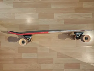 Longboard con un diseño llamativo en dos tonos. Perfecto para paseos. - Tabla de madera. - Diseño bicolor rojo y natural. - Ejes y ruedas incluidos.