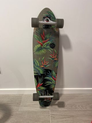 Longboard Globe, modelo East Australia. Diseño vintage con base de madera natural, lija decorativa integrada y forma pin-tail ideal para cruising. Características: • Longitud ~ 105 cm • Base de madera robusta con estilo retro • Ejes sólidos y ruedas blandas para una conducción suave • Excelente estabilidad, ideal para paseos urbanos, en la playa o para disfrutar • Tabla bien mantenida, lista para usar, hay una rueda que a veces suena de no usarlo, pero con engrasarla basta. Está nuevo tal como se ve en las fotos.