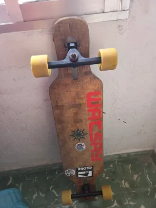 Tabla de longboard homemade. Es identica al modelo Loaded Bhangra 48.5" 9.5" hecha para bailar o practicar freestyle. Está usados, pero en buen estado. Ejes Paris Truck Gold y ruedas Orangutan Opción a vender piezas sueltas. Escucho ofertas! Loaded original skate surf longboard