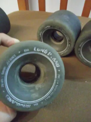 Set de ejes y ruedas para longboard de la marca Long Island. - Ejes negros. - Ruedas verdes. se venden tal cual están, no tengo información de los ejes, solo sé que eran de un longboard de freestyle. las ruedas están casi nuevas, se han usado 4 veces.