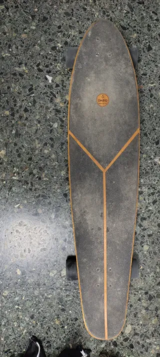 Longboard Oxelo usado como decoración casi en su totalidad