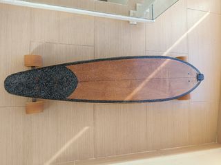 Tabla de longboard estilo pintail. Solo una semana de uso. En perfecto estado. - Diseño con acabado de madera. - Lija negra en la parte superior.