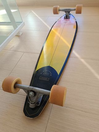 Longboard Koastal Pintail de 38 pulgadas con ejes Revenge. comprado y usado un par de veces, lo dejo barato por abandono de deporte especiar para land paddling - Diseño de madera con franjas. - Forma pintail. - Ejes Revenge. las piezas blancas de las puntas se quitan con la mano. las puse para que no se dañe