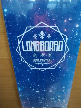 Longboard a estrenar, nunca usado. Diseño moderno y atractivo. - Tabla con diseño gráfico. - Ruedas de color azul claro.