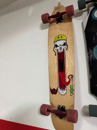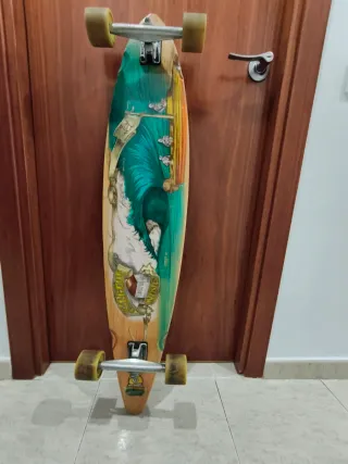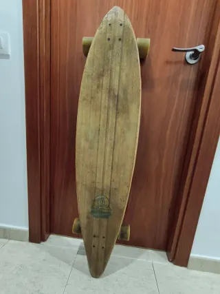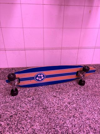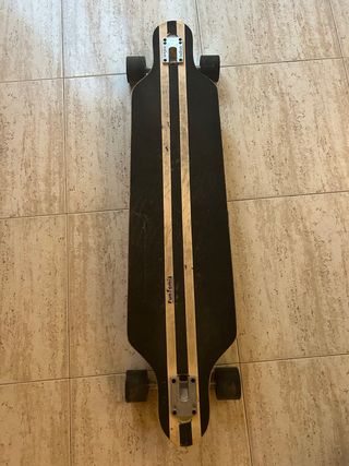 Longboard en muy buen estado, apenas usado. Tabla de madera con diseño clásico, trucks resistentes y ruedas en buen estado, gira suave y estable. Siempre guardado en interior. Listo para usar.