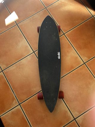 Longboard de la marca Aloiki en color negro. Se encuentra en buen estado. Para adultos, adolescentes. Dimensiones: 40″ x 9.6″ Ruedas: 70mm x 51mm 83A Ejes: Inverted 180mm Rodamientos: ABEC 5 precio original al rededor de 140€