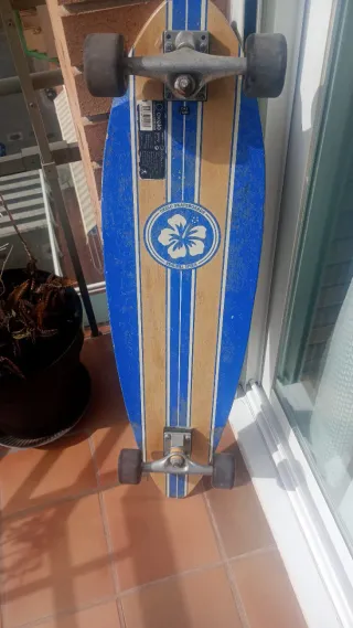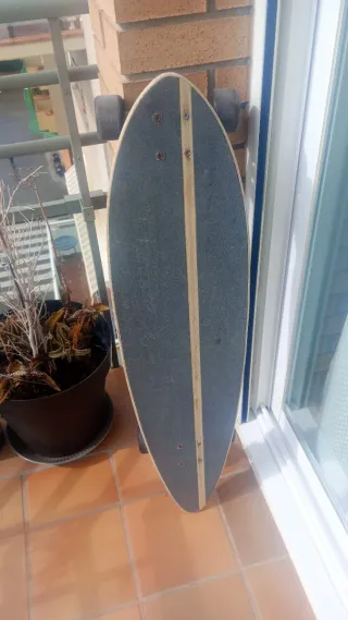 Tabla tipo surfskate/longboard, muy cómoda y estable, ideal para pasear, desplazarse por la ciudad o empezar en el mundo del longboard. ✔️ Ruedas grandes y blandas, perfectas para asfalto✔️ Ejes resistentes✔️ Buena estabilidad Tiene marcas normales de uso (rozaduras en los cantos y desgaste estético), pero funciona perfectamente. Lo vendo porque no lo uso. Entrega en mano.