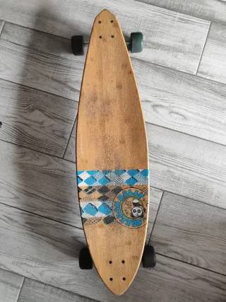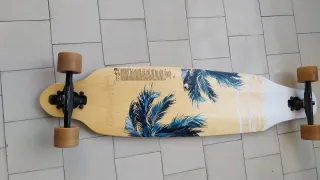 Vendo longboard Oxelo (Decathlon) en buen estado. Lleva ruedas blandas 76A. La lija está en buen estado y los ejes son resistentes. Presenta marcas normales de uso en ruedas y tabla, propias del desgaste, pero funciona perfectamente y está listo para rodar. Ideal tanto para iniciarse en el longboard como para quien busque una tabla cómoda y estable.