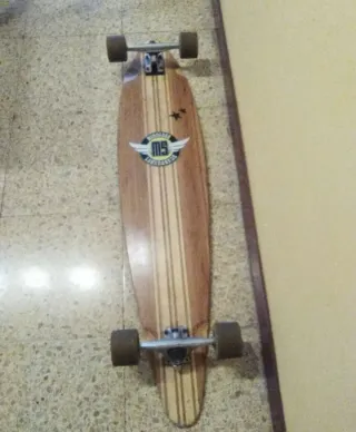 Longboard de madera de la marca LLIISA. - Tabla de madera. - Ruedas verdes. - Ejes metálicos.