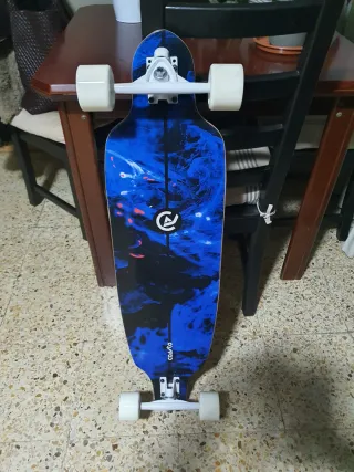 Vendo longboard Oxelo tipo pintail en muy buenas condiciones. Es de segunda mano, pero está muy bien cuidado y en un estado general impecable. La tabla está perfecta para pasear, desplazarse, hacer carving o iniciarse. Se nota que ha tenido uso, pero no tiene nada grave: solo las marcas normales del tiempo y algún roce superficial en la punta. Las ruedas, ejes y la lija están en muy buen estado. Características: Marca: Oxelo Tipo: longboard / monopatín de paseo Forma: pintail Uso ideal: cruising, paseo, carving e iniciación Estado general: muy bueno Ruedas y ejes en buen estado Lija con buen agarre Medidas aproximadas del modelo: La