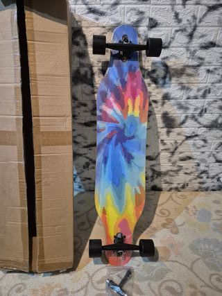 Longboard con un diseño vibrante y llamativo. Ideal para paseos y carving. - Tabla con gráficos coloridos y modernos. - Ruedas de alta calidad para un deslizamiento suave.