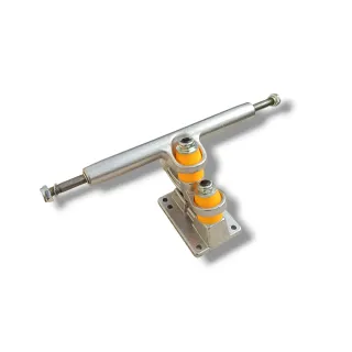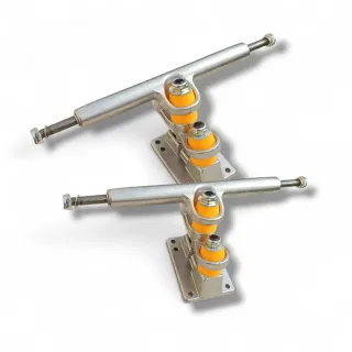 Set de dos ejes doble bushing para longboard de 7 pulgadas. Los ejes de longboard de doble bushing están diseñados para ofrecer mayor estabilidad, control y respuesta en cada giro. Gracias a su sistema de doble goma (bushing), proporcionan una mejor absorción de vibraciones y una conducción más suave, ideal tanto para principiantes como para riders experimentados. Su estructura reforzada permite un equilibrio perfecto entre maniobrabilidad y firmeza, facilitando giros precisos.