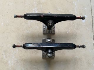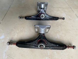Ejes para longboard marca Rogue, modelo Cast 186. - Color negro con detalles en rojo. - Fabricados en aluminio fundido.