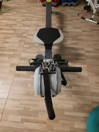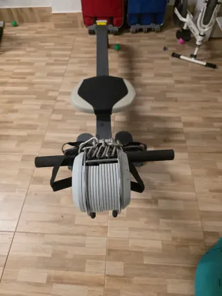 Máquina de remo para ejercitarse en casa. Diseño compacto y funcional. - Asiento acolchado. - Pedales con correas. - Manillar ergonómico.