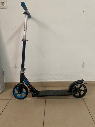 Patinete eléctrico diseñado para niños. Es un medio de transporte divertido y práctico. - Ruedas con luces LED. - Freno trasero. - Plegable para facilitar su transporte. Se ha usado en 5 ocasiones, con lo que la bateria esta al 100% de autonomia El patin si no se pulsa los dos botones a la vez no anda en cuanto deje de presionar se para por seguridad