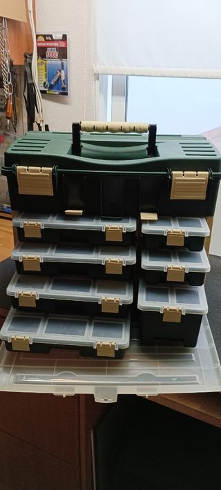 Se vende caja de pesca grande con multitud de cajas individuales, está prácticamente nueva, la compré para radiocontrol, pero es demasiado grande para lo que necesito. Medidas 51*32*42 cm de largo*ancho*alto. No me marees con el precio cuesta lo que pone, si es posible trato en mano, así la ves, si es necesario mandarla, los portes van a parte.