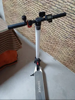 Patinete eléctrico Denver en color blanco. Diseño moderno y funcional. - Manillar ajustable. - Pantalla digital. - Plataforma antideslizante con logo Denver.