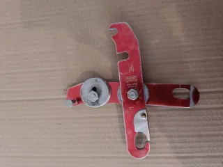 Descensor Petzl con poleas. - Usado pero en buen estado. - Color rojo y plateado. - Fabricado en Francia.