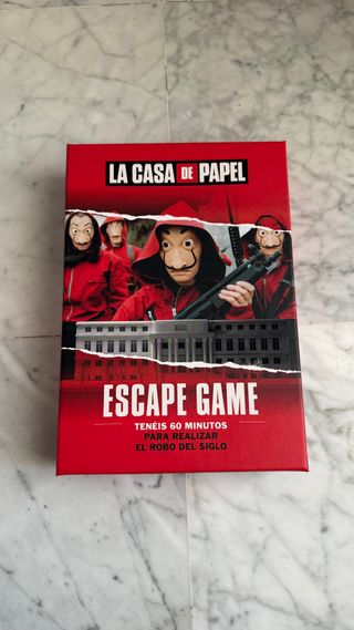 Juego de escape La Casa de Papel para revivir El Robo del Siglo. Solo usado una vez. Impecable. Lo vendo por no usarlo, pero es super chulo. Puedo mandar más fotos si es necesario. Venta en mano o por wallapop. - Basado en la popular serie. - Diseñado para 60 minutos de juego.