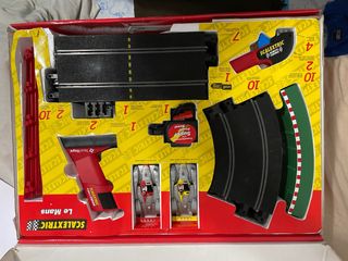 Circuito de Scalextric Le Mans 24 Horas de Le Mans del año 2000, con el coche Audi. - Escala 1:32. - Incluye mandos sin cables (control remoto). - Baterías incluidas para los mandos. - Longitud de pista: 6.49 m.
