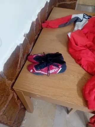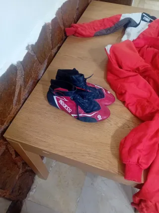 Botas de competición Sparco en color rojo y negro. - Cierre con cordones. - Suela de goma. - Diseño deportivo.