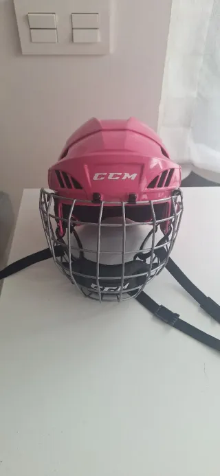 Casco de hockey infantil CCM en color rosa. Diseñado para la protección en el hielo. - Marca: CCM - Color: Rosa - Tipo: Casco de hockey infantil